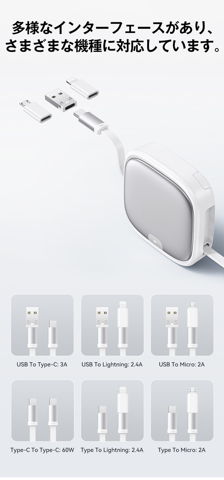 60W伸縮データケーブル多機能収納ケース
